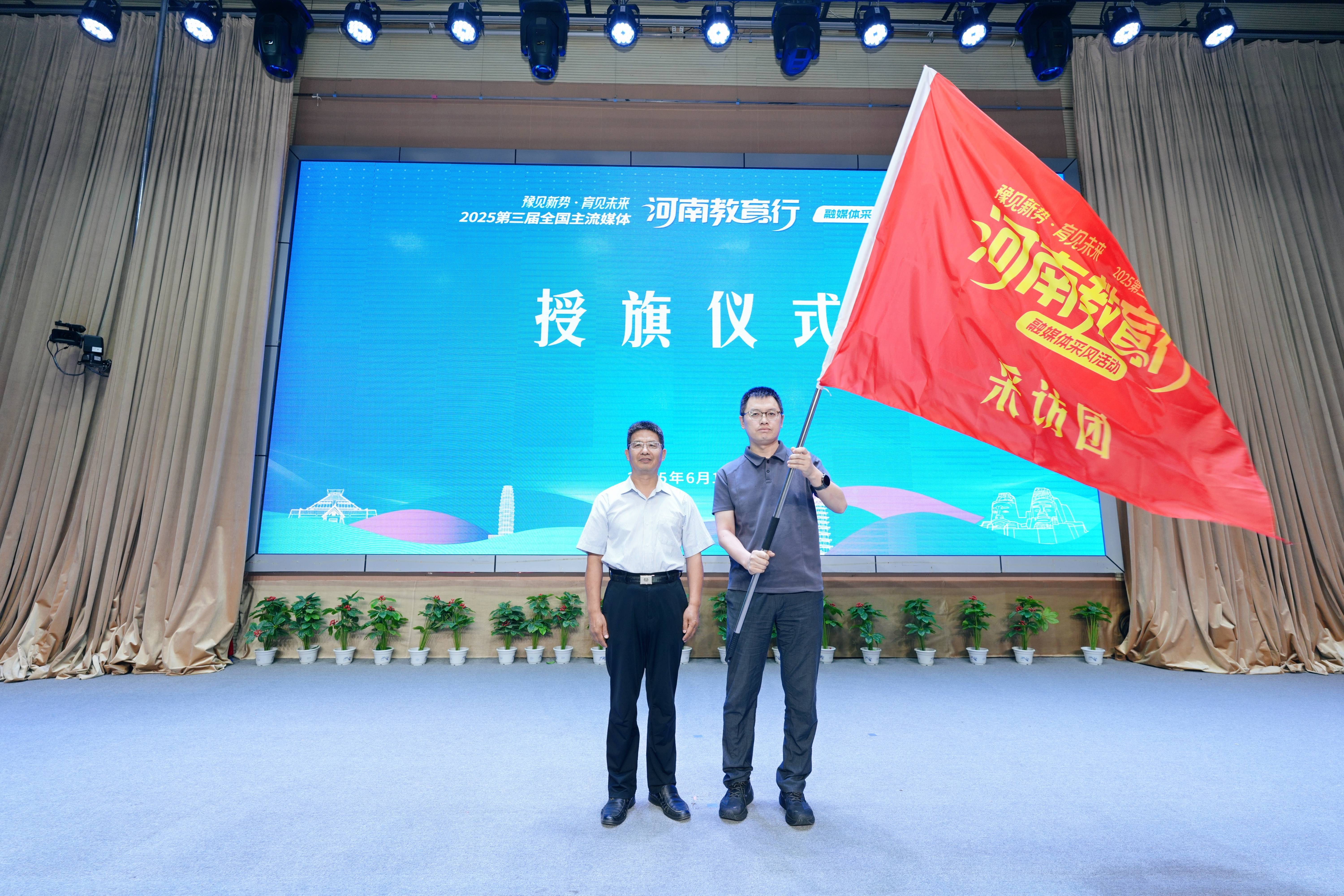 与会领导共同启动2025第三届“全国主流媒体河南教育行”融媒体采风活动。